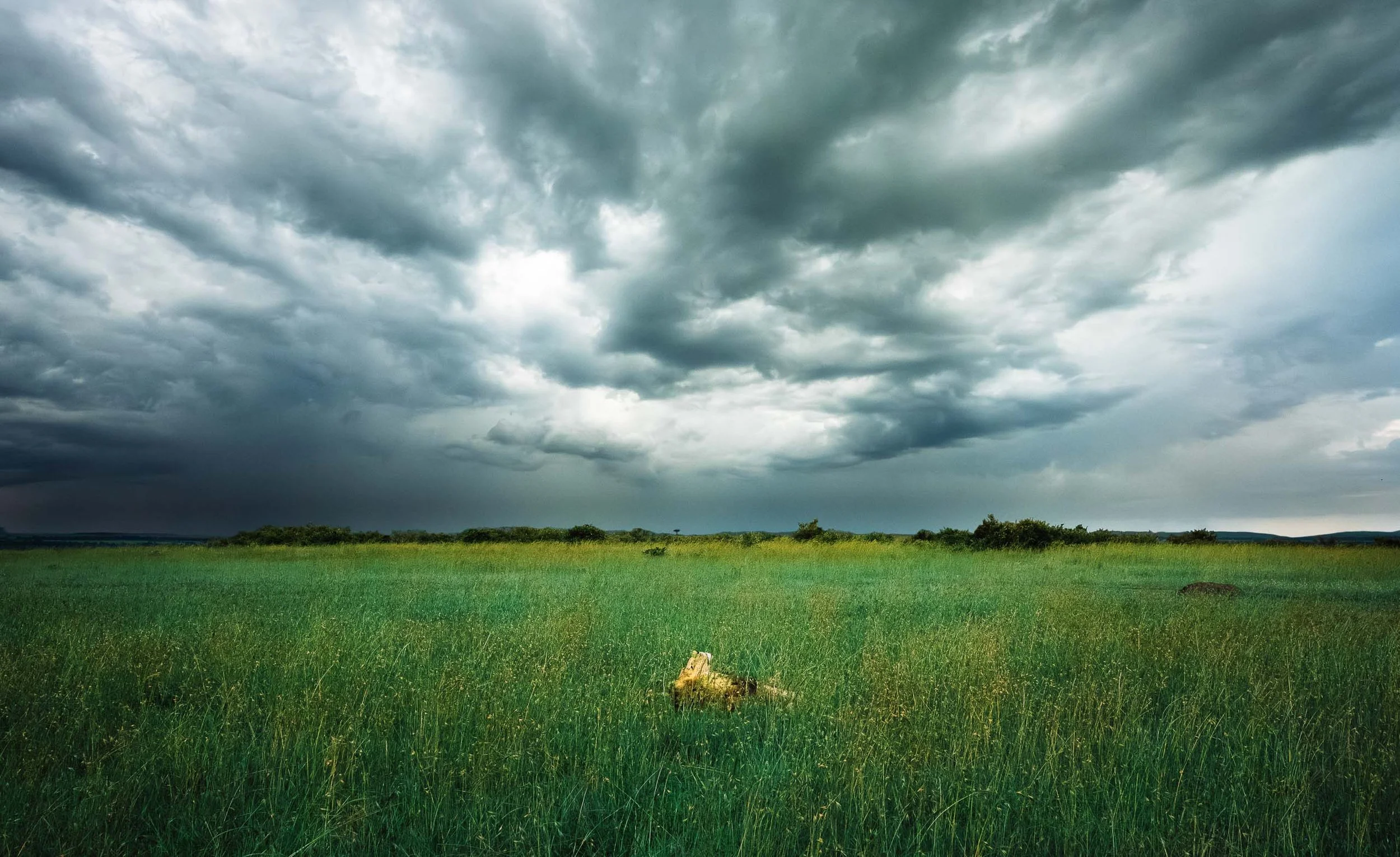 Amidst the vast, open plains of the Mara, this male lion has his gaze fixed entirely on the shifting storm clouds above. There is a profound stillness in this moment of solitude. Surrounded by the immense scale of the landscape and the weight of the coming rain, he seemed less like a hunter and more like a witness to the world around him. This image captures that rare, internal side of the wild—a predator caught in a private moment of reflection, surrendered to the quiet rhythm of the sky.